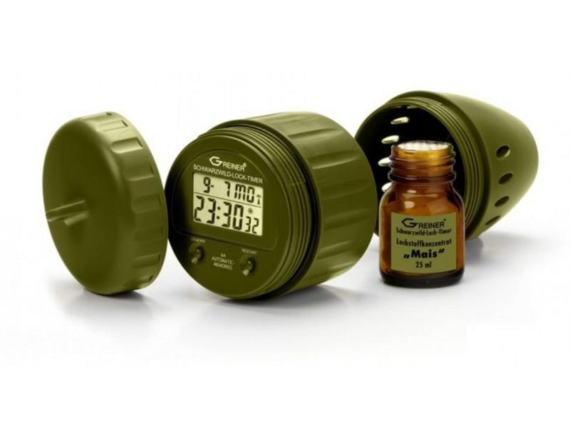 Digitálne kontrolné hodiny na zver s možnosťou zaznamenania 64 pohybov v pamäti, sú kontrolné hodiny s vnadidlom vo vnútri a používajú sa na kontrolu pohybu zvere v rôznom čase na určitom mieste napr. krmelisko. Integrovaný pokročilý systém ovládania je tým najlepším nástrojom ako odhlaiť presný čas pohybu zvere na určitom mieste. Vždy keď sa hodiny zásluhou zvere pohnú zaznamenajú čas a ten sa zároveň uloží do pamäte hodín a vy budete presne vediet kedy sa diviaky zdržiavajú pri vašom posede. Hodiny sú vyrobené z veľmi tvrdého a odolného syntetického materiálu tak aby boli odolné proti poškodeniu. Kontrolné hodiny Greiner na zver s vnadidlom vo vnútri sú vodotesné a určené na použitie vo vonkajšom priestore