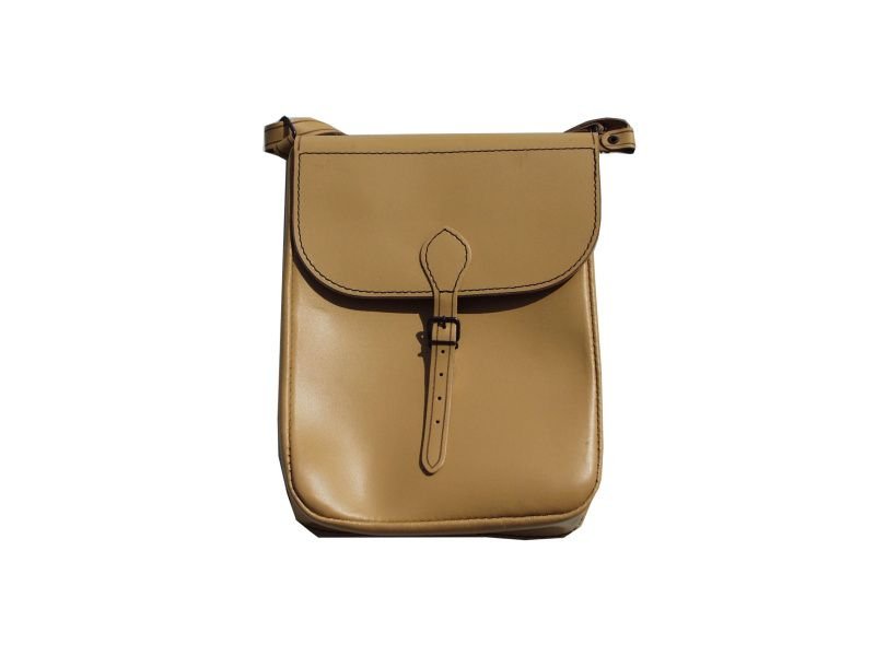 Kvalitná pevná odolná kožená lesnícka brašňa z bravčoviny prírodnej farby.