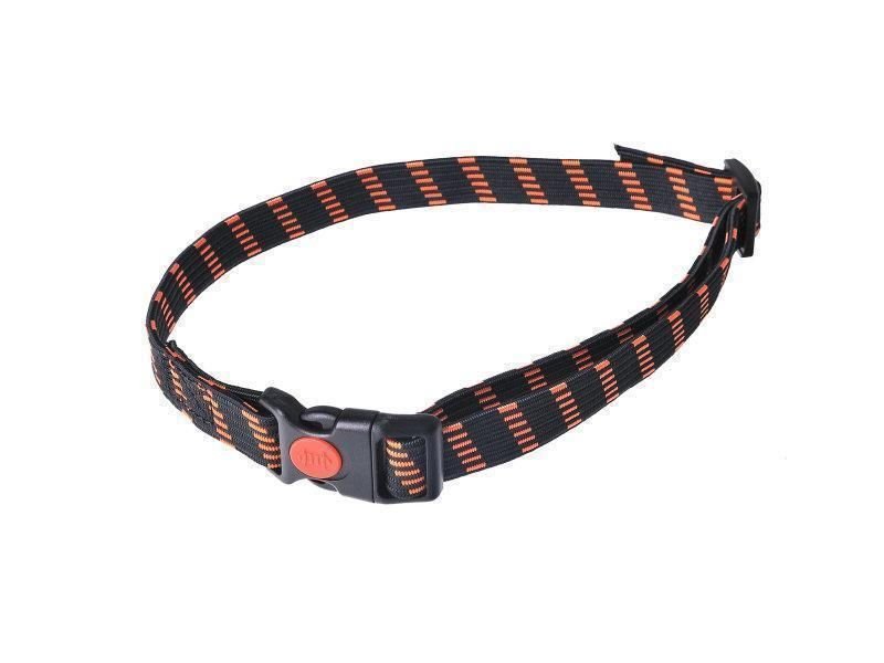 Pružný gumový obojok pre psa – dĺžka cca 75 cm, šírka 25 mm, s plastovou bezpečnostnou sponou. Obojok je vhodný do prijímačov modelov d-control, d-fence, d-mute / light, zaručuje priliehavosť obojku a kontakt elektród s pokožkou pri pokojovom aj pracovného režimu psíka. Obojky sú v čierno-oranžovej a čierno-zelenej farbe, výber možný podľa skladových zásob (výber farby uveďte v poznámke). Guma možno skrátiť podľa potreby.