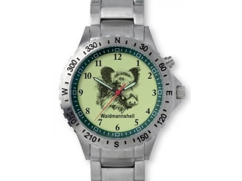 Poľovnícke hodinky Greiner nerezový remienok/hlava diviaka