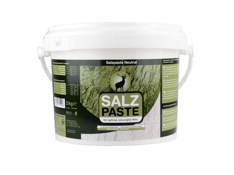 DEUS Soľná pasta je vysoko kvalitný minerálny produkt hustej konzistencie. Flexibilné použitie umožňuje optimálne zaopatriť zver potrebnými minerálnymi látkami a soľou na každom požadovanom mieste v revíri. Vďaka príručnom balení môžete mať soľnú pastu pri každej obchôdzke revíru pri sebe. Požadované množstvo soli jednoducho natrite na peň alebo polámané drevo a nechajte zatvrdnúť. Poľovníkov extra bonus – soľnú pastu nemožno ukradnúť! Soľnú pastu dostanete v štyroch variantoch: Soľná pasta neutrálna je bez prísad. Primiešanie individuálnych vábiacich látok a medikamentov je možné. Soľná pasta aníz bola špeciálne vyvinutá pre vysokú zver, danieljiu zver a srnčiu zver. Obľúbená vábiaca látka aníz zaisťuje zveri rýchle a spoľahlivé nájdenie miesta soľného lizu. Solná pasta lanýž je výborne prijímaná čiernou zverou. Pasta obsahuje vysoko kvalitnú lanýžovú esenciu.
